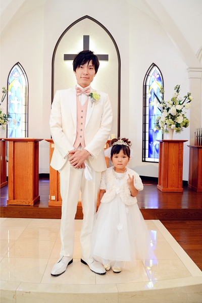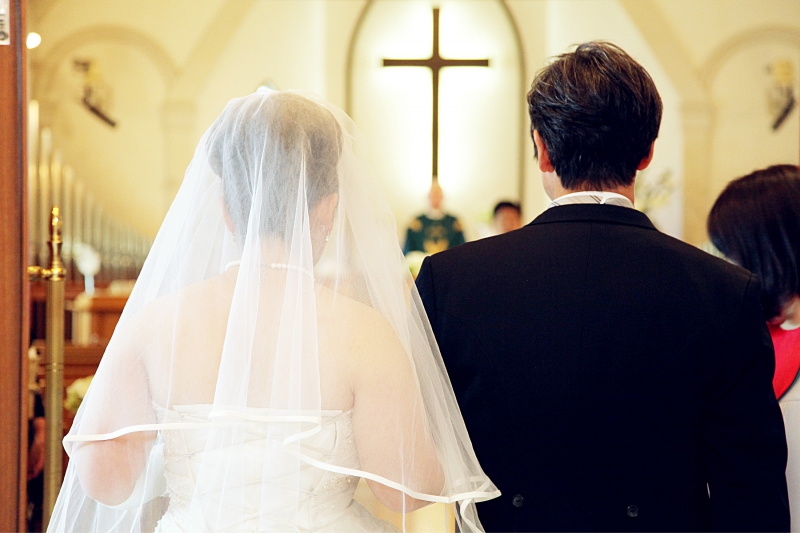 お母様からのベールダウンとお父様と歩くバージンロード。